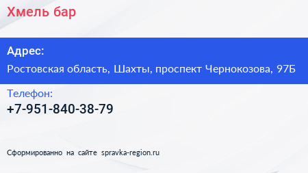 Хмель, бар по адресу Ростовская область, Шахты, проспект Чернокозова, 97Б в дальнейшем Организация, размещена в следующих категориях: