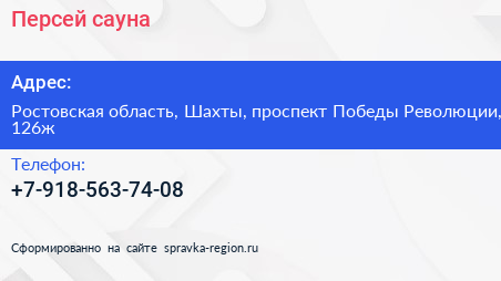 Персей, сауна по адресу Ростовская область, Шахты, проспект Победы Революции, 126ж в дальнейшем Организация, размещена в следующих категориях: