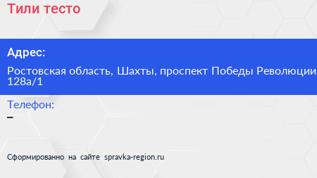 Тили тесто по адресу Ростовская область, Шахты, проспект Победы Революции, 128а/1 в дальнейшем Организация, размещена в следующих категориях: