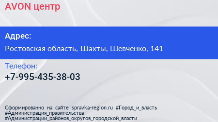 AVON, центр по адресу Ростовская область, Шахты, Шевченко, 141 в дальнейшем Организация, размещена в следующих категориях: