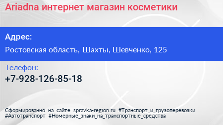 Ariadna, интернет-магазин косметики по адресу Ростовская область, Шахты, Шевченко, 125 в дальнейшем Организация, размещена в следующих категориях: