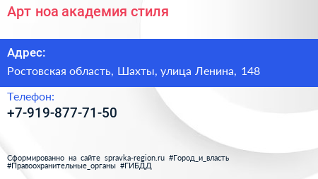 Арт`ноа, академия стиля по адресу Ростовская область, Шахты, улица Ленина, 148 в дальнейшем Организация, размещена в следующих категориях: