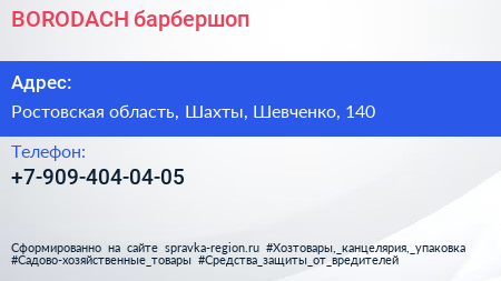 BORODACH, барбершоп по адресу Ростовская область, Шахты, Шевченко, 140 в дальнейшем Организация, размещена в следующих категориях: