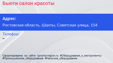 Бьюти, салон красоты по адресу Ростовская область, Шахты, Советская улица, 154 в дальнейшем Организация, размещена в следующих категориях: