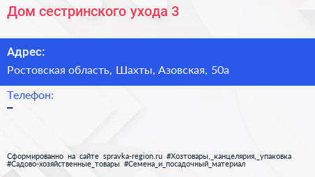 Дом сестринского ухода №3 по адресу Ростовская область, Шахты, Азовская, 50а в дальнейшем Организация, размещена в следующих категориях: