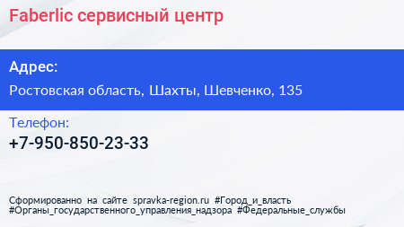 Faberlic, сервисный центр по адресу Ростовская область, Шахты, Шевченко, 135 в дальнейшем Организация, размещена в следующих категориях: