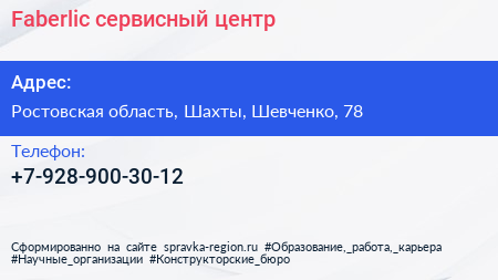 Faberlic, сервисный центр по адресу Ростовская область, Шахты, Шевченко, 78 в дальнейшем Организация, размещена в следующих категориях:
