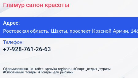 Гламур, салон красоты по адресу Ростовская область, Шахты, проспект Красной Армии, 146 в дальнейшем Организация, размещена в следующих категориях: