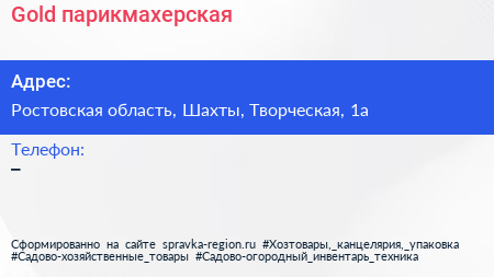 Gold, парикмахерская по адресу Ростовская область, Шахты, Творческая, 1а в дальнейшем Организация, размещена в следующих категориях: