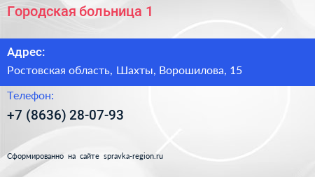 Городская больница №1 по адресу Ростовская область, Шахты, Ворошилова, 15 в дальнейшем Организация, размещена в следующих категориях: