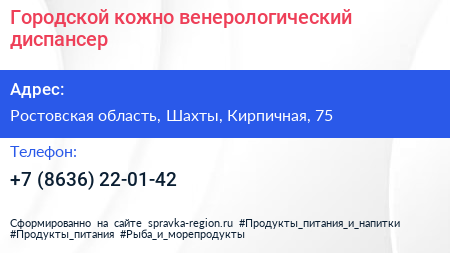 Городской кожно-венерологический диспансер по адресу Ростовская область, Шахты, Кирпичная, 75 в дальнейшем Организация, размещена в следующих категориях: