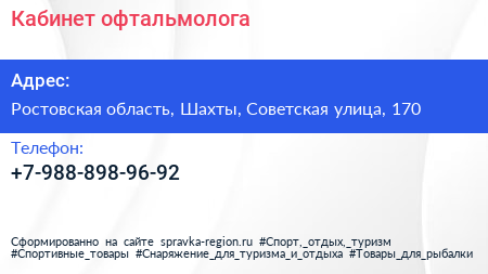 Кабинет офтальмолога по адресу Ростовская область, Шахты, Советская улица, 170 в дальнейшем Организация, размещена в следующих категориях: