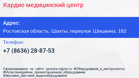 Кардио, медицинский центр по адресу Ростовская область, Шахты, переулок Шишкина, 182 в дальнейшем Организация, размещена в следующих категориях:
