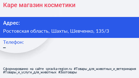 Каре, магазин косметики по адресу Ростовская область, Шахты, Шевченко, 135/3 в дальнейшем Организация, размещена в следующих категориях: