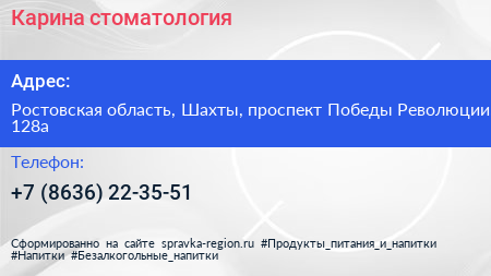 Карина, стоматология по адресу Ростовская область, Шахты, проспект Победы Революции, 128а в дальнейшем Организация, размещена в следующих категориях: