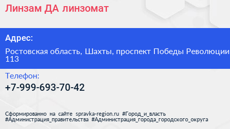 Линзам ДА, линзомат по адресу Ростовская область, Шахты, проспект Победы Революции, 113 в дальнейшем Организация, размещена в следующих категориях:
