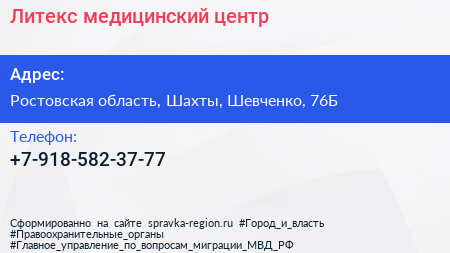Литекс, медицинский центр по адресу Ростовская область, Шахты, Шевченко, 76Б в дальнейшем Организация, размещена в следующих категориях: