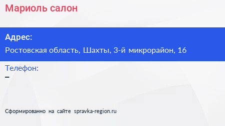 Мариоль, салон по адресу Ростовская область, Шахты, 3-й микрорайон, 16 в дальнейшем Организация, размещена в следующих категориях: