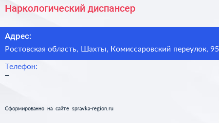 Наркологический диспансер по адресу Ростовская область, Шахты, Комиссаровский переулок, 95 в дальнейшем Организация, размещена в следующих категориях: