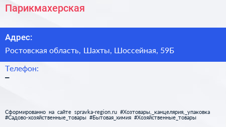 Парикмахерская по адресу Ростовская область, Шахты, Шоссейная, 59Б в дальнейшем Организация, размещена в следующих категориях: