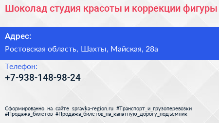 Шоколад, студия красоты и коррекции фигуры по адресу Ростовская область, Шахты, Майская, 28а в дальнейшем Организация, размещена в следующих категориях: