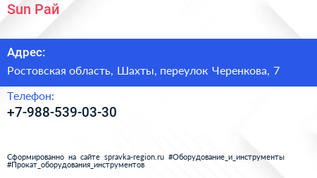 Sun Рай по адресу Ростовская область, Шахты, переулок Черенкова, 7 в дальнейшем Организация, размещена в следующих категориях: