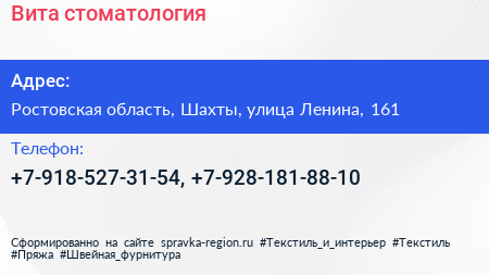 Вита, стоматология по адресу Ростовская область, Шахты, улица Ленина, 161 в дальнейшем Организация, размещена в следующих категориях: