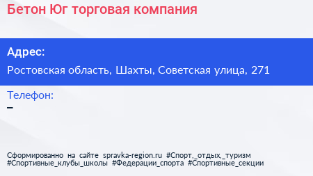 Бетон-Юг, торговая компания по адресу Ростовская область, Шахты, Советская улица, 271 в дальнейшем Организация, размещена в следующих категориях: