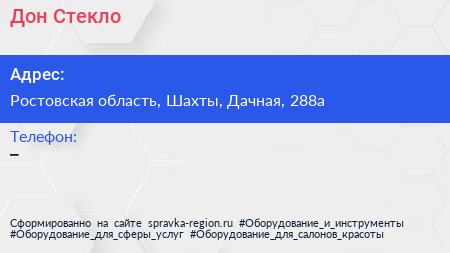 Дон-Стекло по адресу Ростовская область, Шахты, Дачная, 288а в дальнейшем Организация, размещена в следующих категориях: