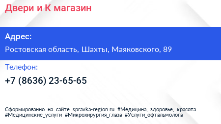 Двери и К, магазин по адресу Ростовская область, Шахты, Маяковского, 89 в дальнейшем Организация, размещена в следующих категориях: