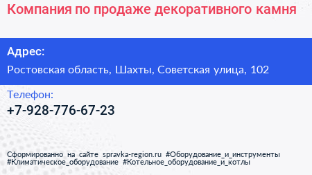 Компания по продаже декоративного камня по адресу Ростовская область, Шахты, Советская улица, 102 в дальнейшем Организация, размещена в следующих категориях:
