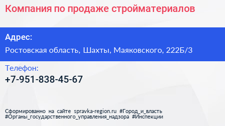 Компания по продаже стройматериалов по адресу Ростовская область, Шахты, Маяковского, 222Б/3 в дальнейшем Организация, размещена в следующих категориях: