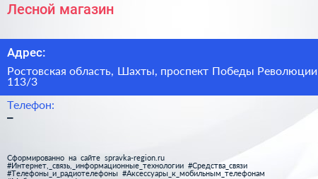 Лесной, магазин по адресу Ростовская область, Шахты, проспект Победы Революции, 113/3 в дальнейшем Организация, размещена в следующих категориях: