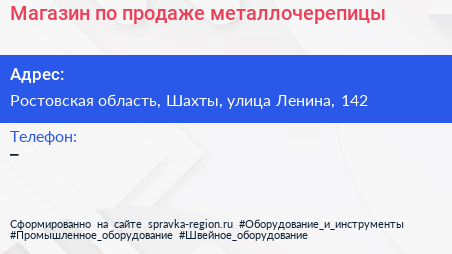 Магазин по продаже металлочерепицы по адресу Ростовская область, Шахты, улица Ленина, 142 в дальнейшем Организация, размещена в следующих категориях: