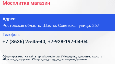 Мосплитка, магазин по адресу Ростовская область, Шахты, Советская улица, 257 в дальнейшем Организация, размещена в следующих категориях: