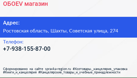 ОБОЕV, магазин по адресу Ростовская область, Шахты, Советская улица, 274 в дальнейшем Организация, размещена в следующих категориях: