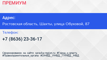 ПРЕМИУМ по адресу Ростовская область, Шахты, улица Обуховой, 87 в дальнейшем Организация, размещена в следующих категориях: