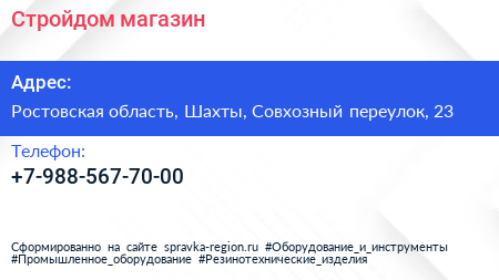 Стройдом, магазин по адресу Ростовская область, Шахты, Совхозный переулок, 23 в дальнейшем Организация, размещена в следующих категориях: