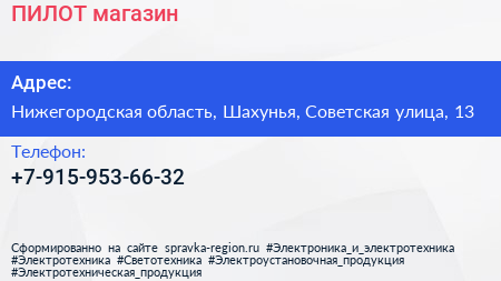 ПИЛОТ, магазин по адресу Нижегородская область, Шахунья, Советская улица, 13 в дальнейшем Организация, размещена в следующих категориях: