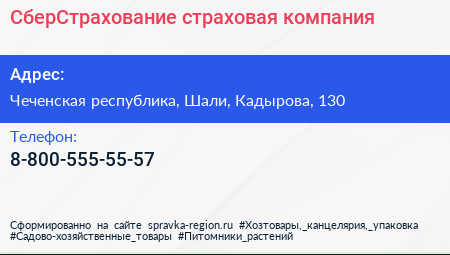 СберСтрахование, страховая компания по адресу Чеченская республика, Шали, Кадырова, 130 в дальнейшем Организация, размещена в следующих категориях: