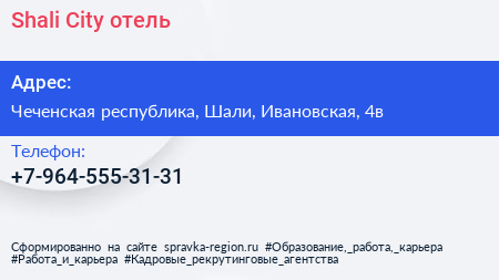 Shali-City, отель по адресу Чеченская республика, Шали, Ивановская, 4в в дальнейшем Организация, размещена в следующих категориях: