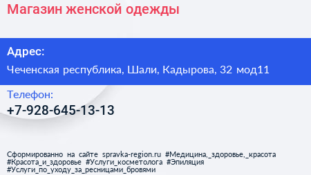 Магазин женской одежды по адресу Чеченская республика, Шали, Кадырова, 32 мод11 в дальнейшем Организация, размещена в следующих категориях:
