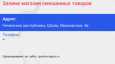 Залина, магазин смешанных товаров по адресу Чеченская республика, Шали, Ивановская, 4в в дальнейшем Организация, размещена в следующих категориях: