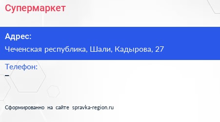 Супермаркет по адресу Чеченская республика, Шали, Кадырова, 27 в дальнейшем Организация, размещена в следующих категориях: