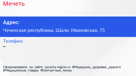 Мечеть по адресу Чеченская республика, Шали, Ивановская, 75 в дальнейшем Организация, размещена в следующих категориях:
