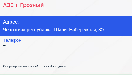 АЗС, г. Грозный по адресу Чеченская республика, Шали, Набережная, 80 в дальнейшем Организация, размещена в следующих категориях: