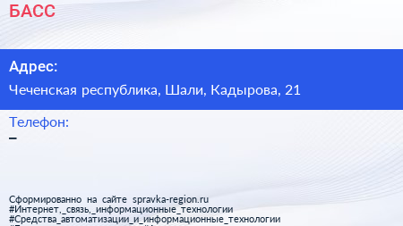 БАСС по адресу Чеченская республика, Шали, Кадырова, 21 в дальнейшем Организация, размещена в следующих категориях: