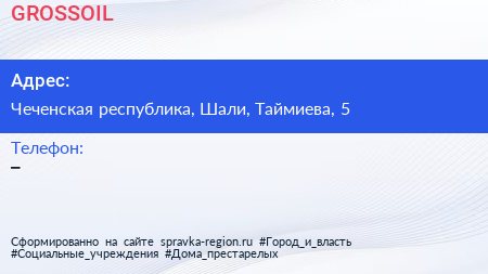 GROSSOIL по адресу Чеченская республика, Шали, Таймиева, 5 в дальнейшем Организация, размещена в следующих категориях: