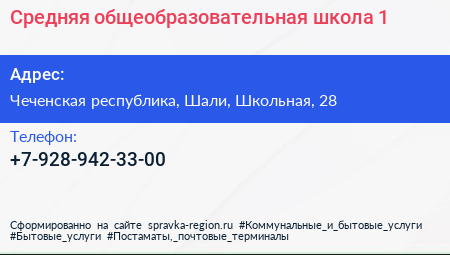 Средняя общеобразовательная школа №1 по адресу Чеченская республика, Шали, Школьная, 28 в дальнейшем Организация, размещена в следующих категориях: