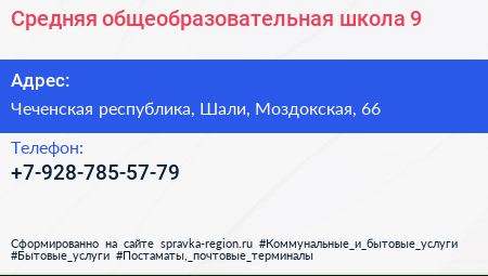 Средняя общеобразовательная школа №9 по адресу Чеченская республика, Шали, Моздокская, 66 в дальнейшем Организация, размещена в следующих категориях:
